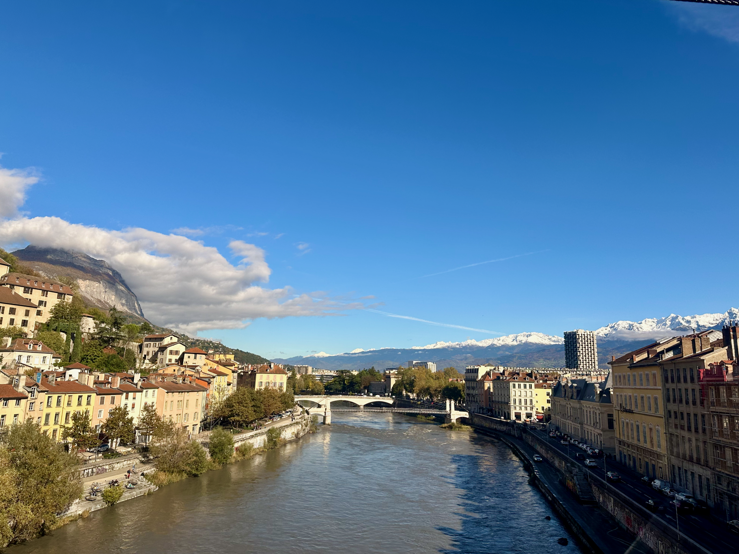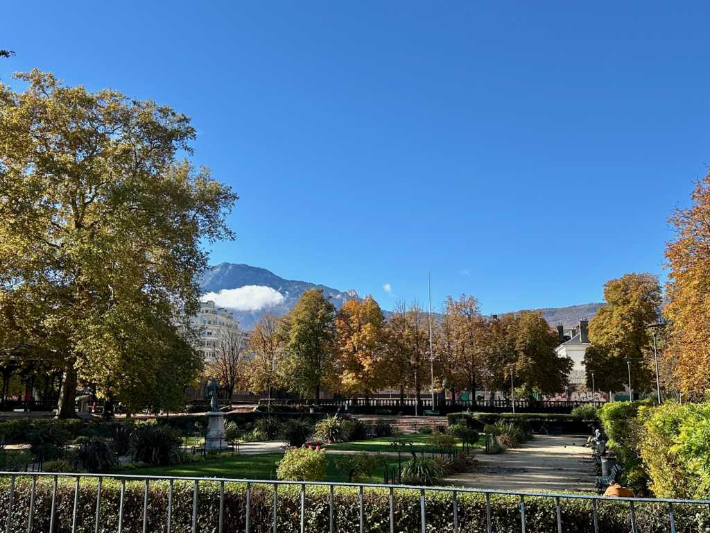 We spent the late afternoon strolling along the banks of the Isère, watching locals cycle and families enjoy the sunshine. The riverfront pathways are lined with poplar trees that were just beginning to turn yellow.