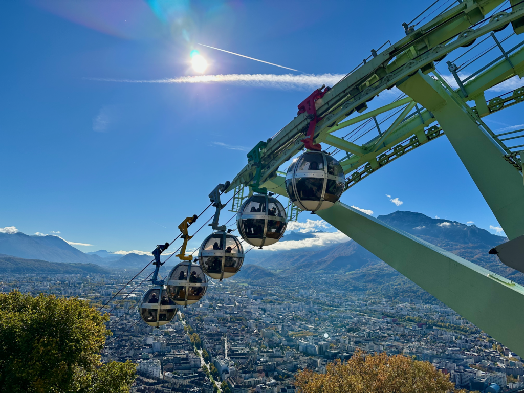 After exploring the town’s markets and quiet plazas, we made our way to the foot of the famous Grenoble-Bastille cable cars—locally known as the “bubbles.”