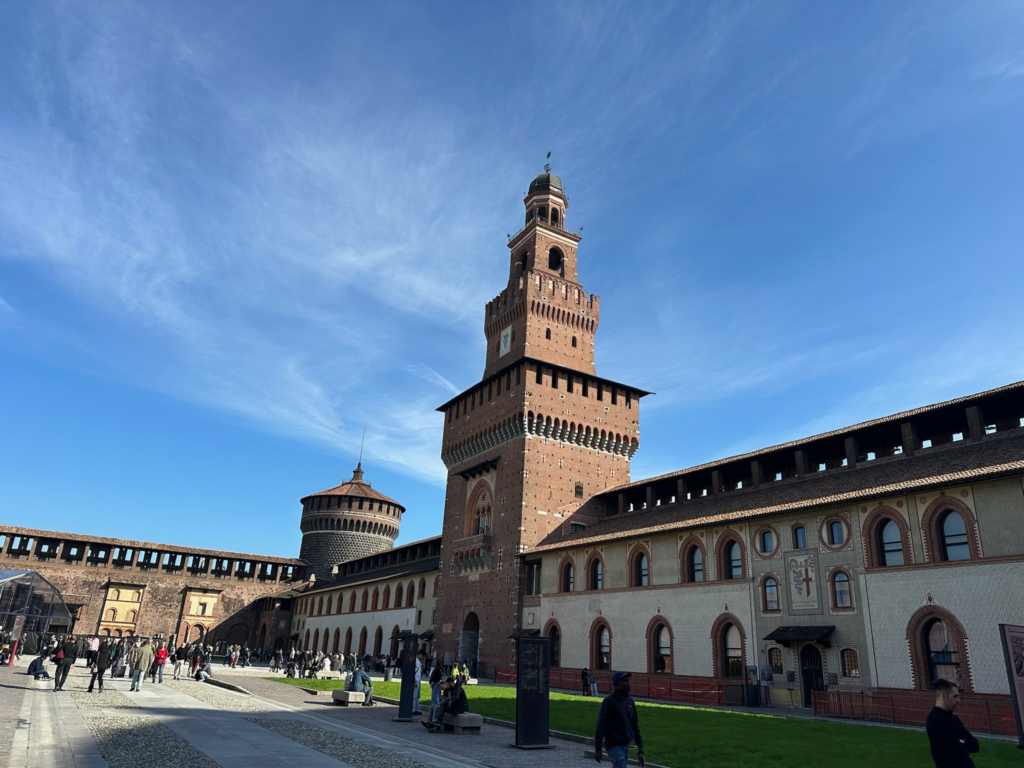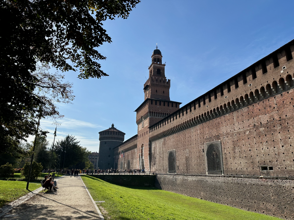 Next we made our way to Castello Sforzesco, the imposing red‑brick fortress that once housed Milan’s ruling family. Inside its walls we explored courtyards, museums and art collections, including Michelangelo’s unfinished Rondanini Pietà.