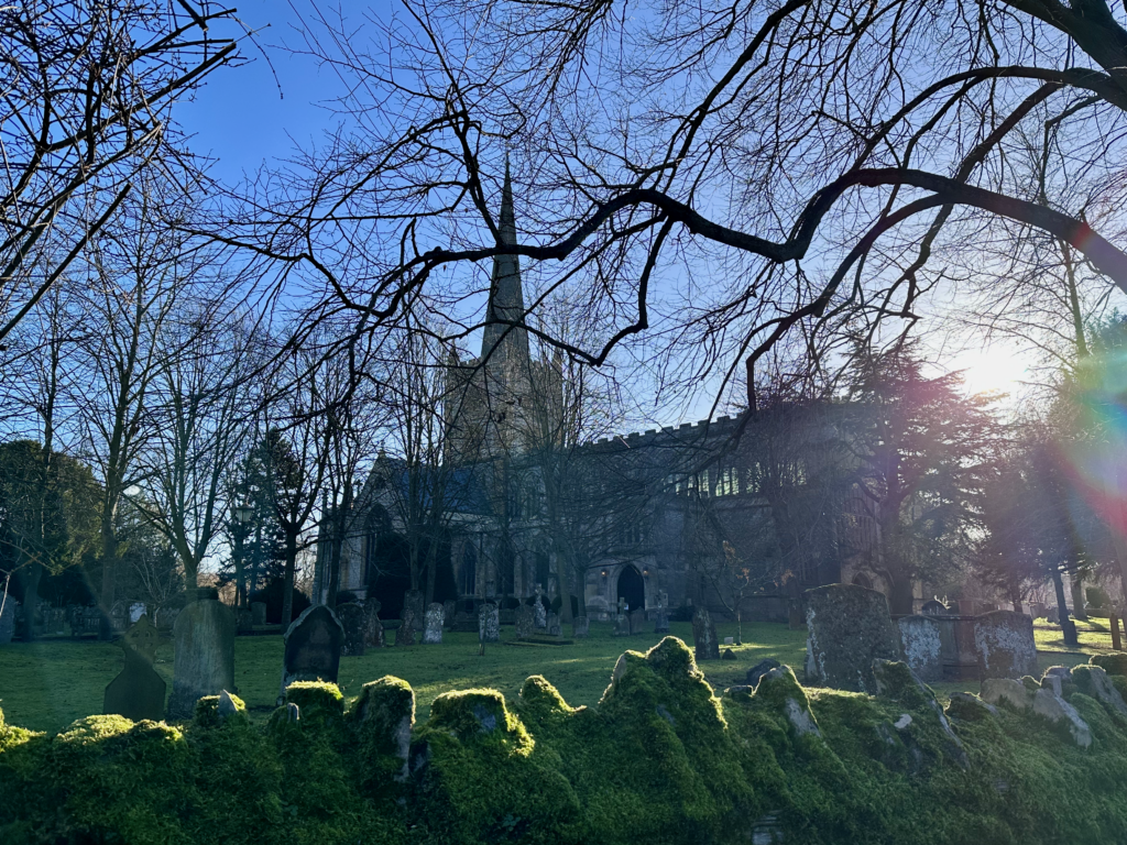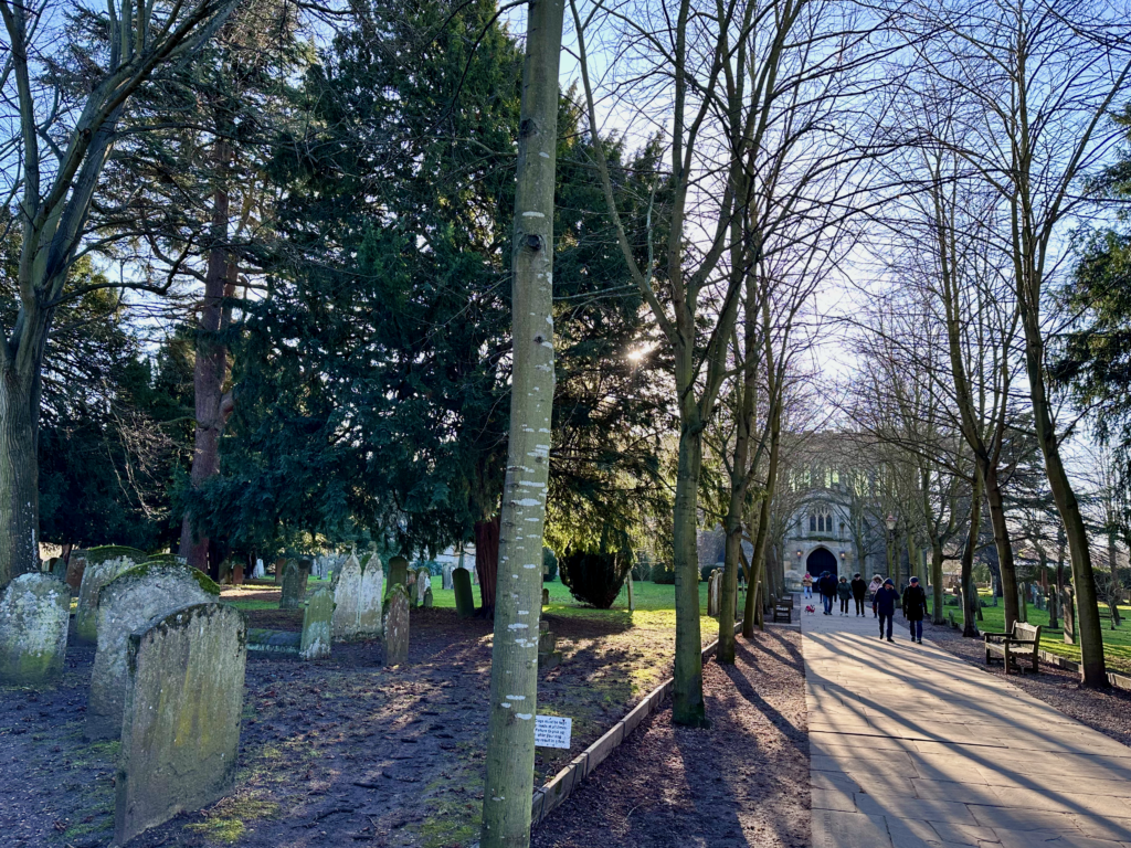 We stopped by the Church of the Holy Trinity, where William Shakespeare is buried. We didn’t attend a service, but the ancient church looked beautiful from the outside, framed by winter trees and festive wreaths.