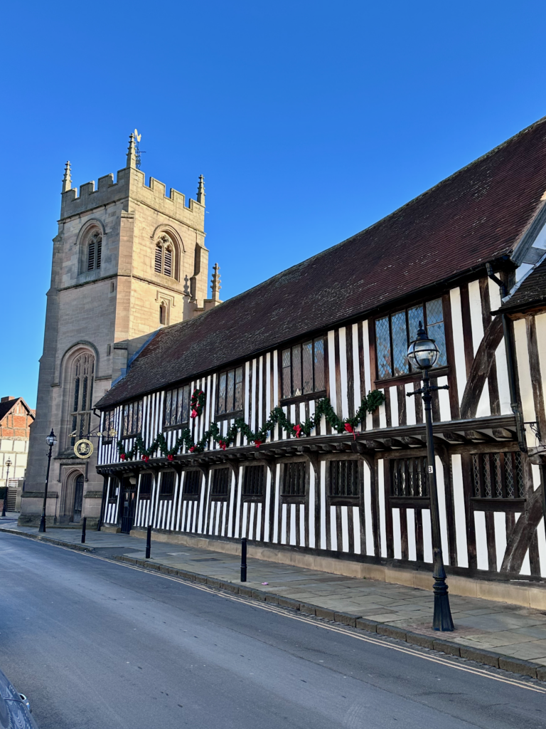 Christmas Day dawned crisp and clear. We took a leisurely stroll through the nearly empty town centre, enjoying the quiet beauty of the Tudor architecture and festively decorated shop windows.